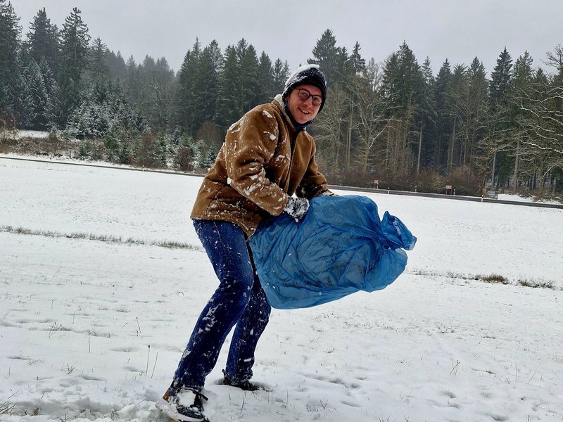 Unsere AT-Leitung ließ sich das nicht zweimal sagen und brachte bereits am nächsten Tag Holzschlitten und Bobs von zu Hause mit. Sogar ein Rutschversuch auf Müllsäcken wurde gestartet, dieser erwies sich allerdings als weniger gelungen.